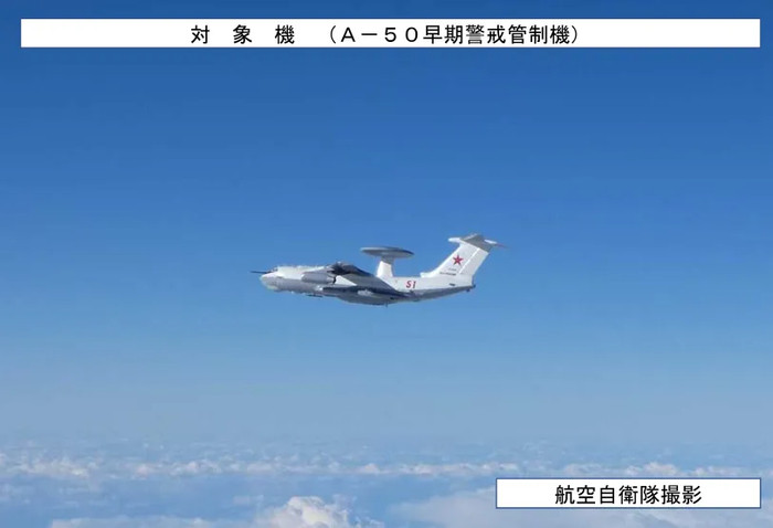 日本航空自保队拍摄到的自如军轰-6K战机,俄空天军A-50预警机,自如军歼-16战机和俄空天军苏-30SM战机