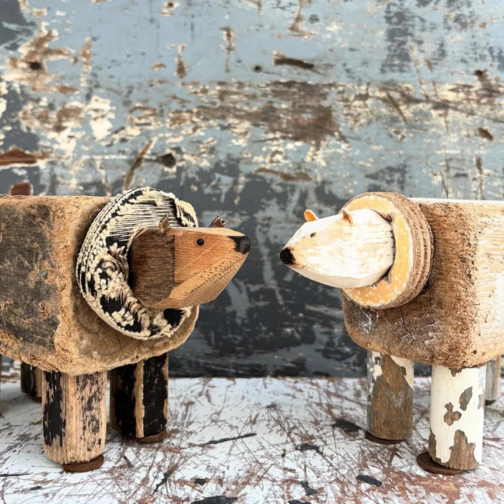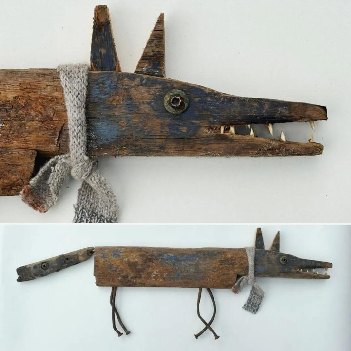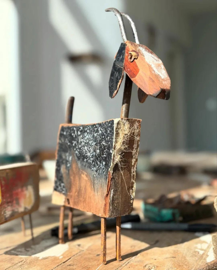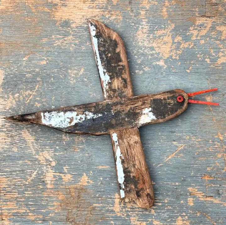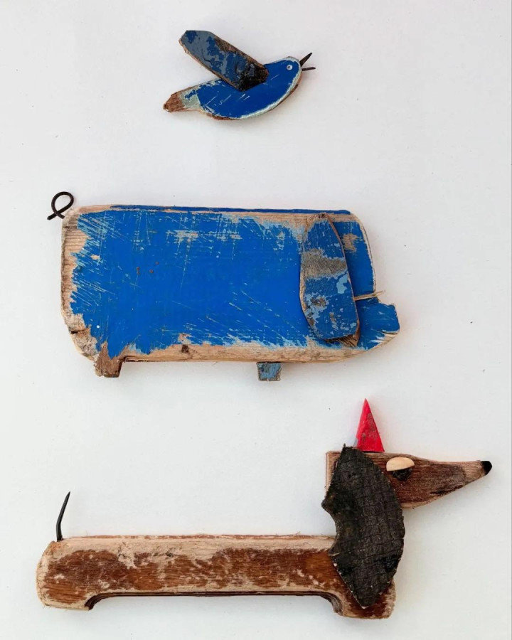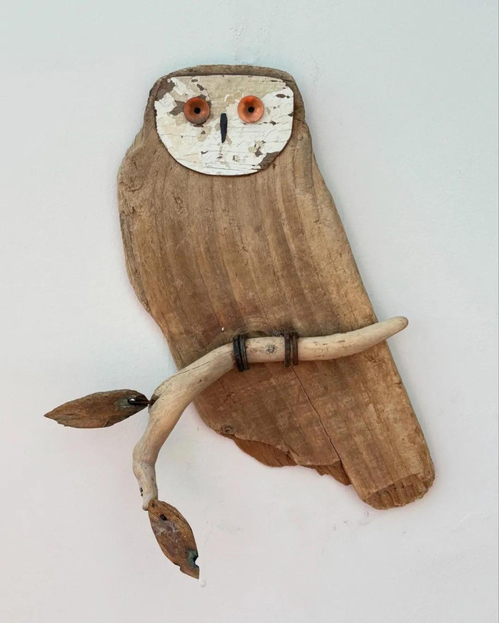 她的创作材料全靠海边捡漏——被海水冲上岸的烂木块,大多是被东谈主丢弃的旧产品。这些历经海潮冲刷的木头带着私有的纹理和色调,在柯斯蒂眼里几乎即是自然的艺术品原料。