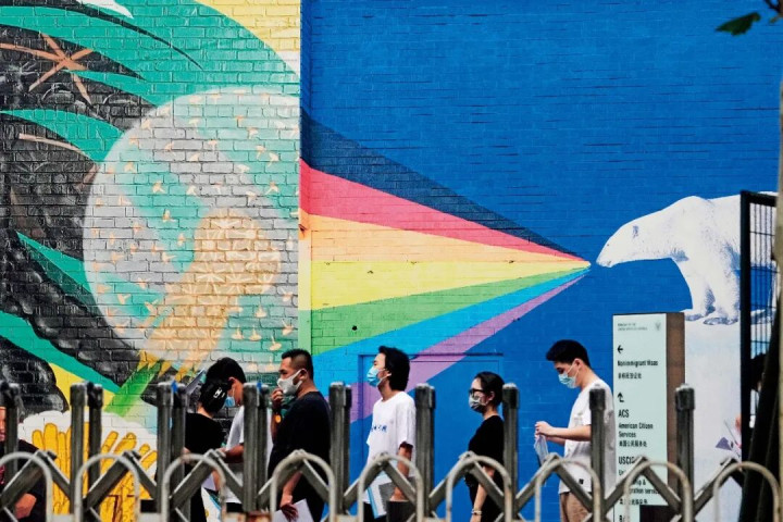 2022年8月1日,位于北京的好意思国驻华大使馆外,访客列队等候。图/视觉中国