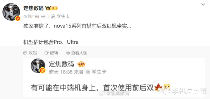 另外字据数码博主的爆料,华为nova 15系列将不时三款机型的居品线,分离是nova 15、nova 15 Pro和nova 15 Ultra。