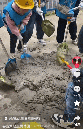 孩子们的器具一个比一个王人全,挖沙、砌墙、盖屋子等都作念得像模像样,大有能徒手造出一个三室一厅的架势。